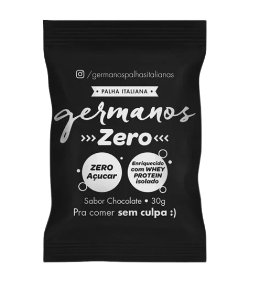 Germanos é a genuina palha italiana feita com produtos de alta qualidade e ZERO açúcar, ideal como sobremesa ou para acompanhar aquele chá ou café. Para ajudar na dieta e naqueles dias que necessitamos comer um doce sem culpa.Enriquecido com whey protein isolado.